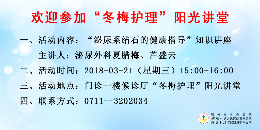 2018年3月21日“冬梅护理”阳光讲堂——泌尿系结石的健康指导