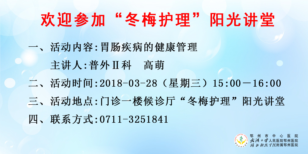 2018年3月28日“冬梅护理”阳光讲堂——胃肠疾病的健康管理