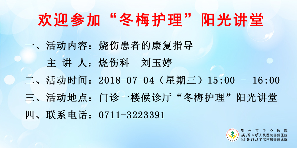 2018年7月4日“冬梅护理”阳光讲堂——烧伤患者的康复指导