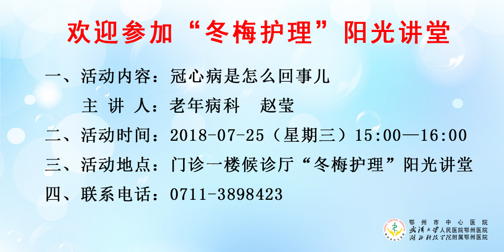 2018年7月25日“冬梅护理”阳光讲堂——冠心病史怎么回事儿