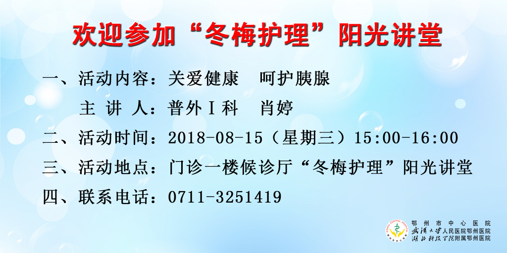 2018年8月1日“冬梅护理”阳光讲堂——关爱健康呵护胰腺