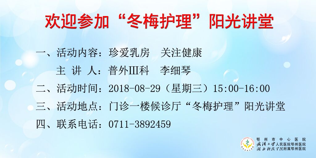 2018年8月29日“冬梅护理”阳光讲堂——珍爱乳房关注健康