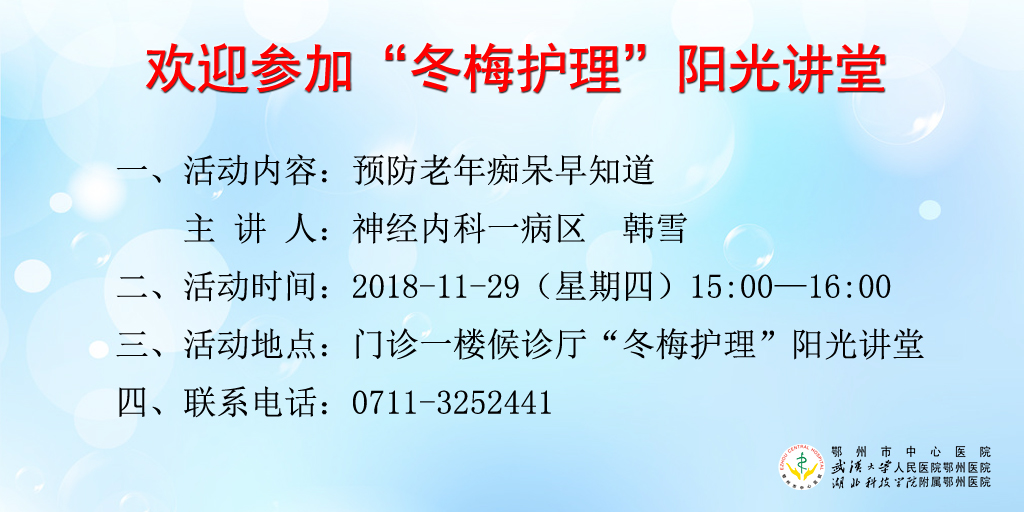 2018年11月29日“冬梅护理”阳光讲堂——预防老年痴呆早知道