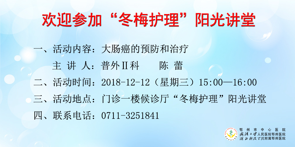 2018年12月12日“冬梅护理”阳光讲堂——大肠癌的预防和治疗