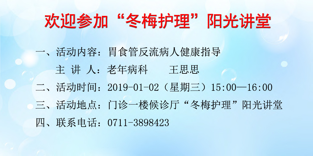 2019年1月2日“冬梅护理”阳光讲堂——胃食管反流病人健康指导