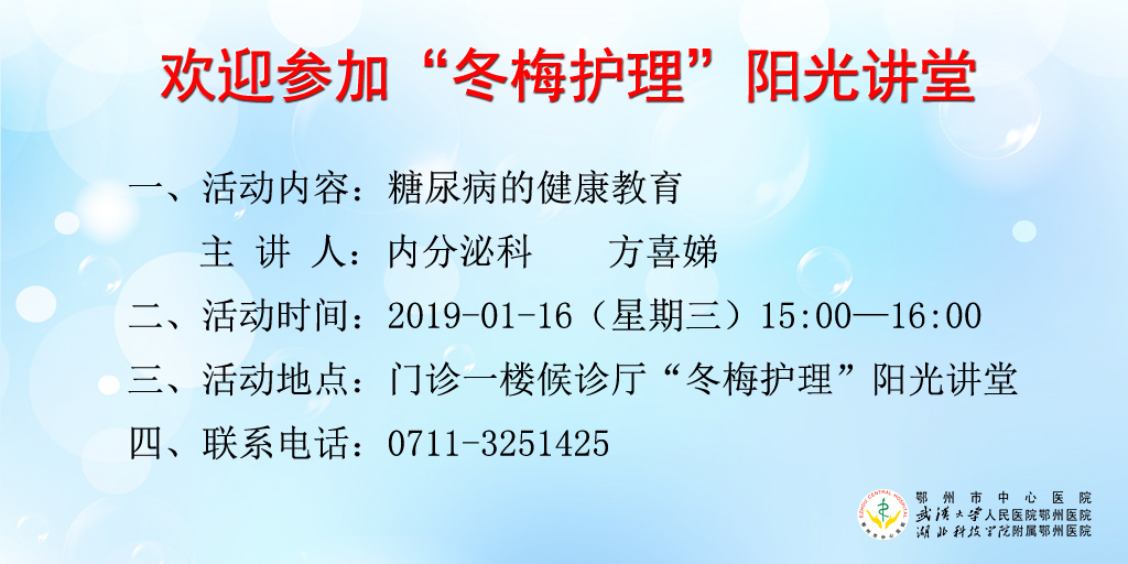 2019年1月16日“冬梅护理”阳光讲堂——糖尿病的健康教育