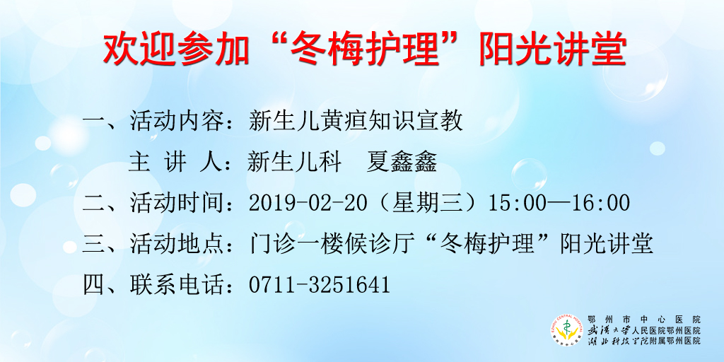 2019年2月20日“冬梅护理”阳光讲堂——新生儿黄疸知识宣教
