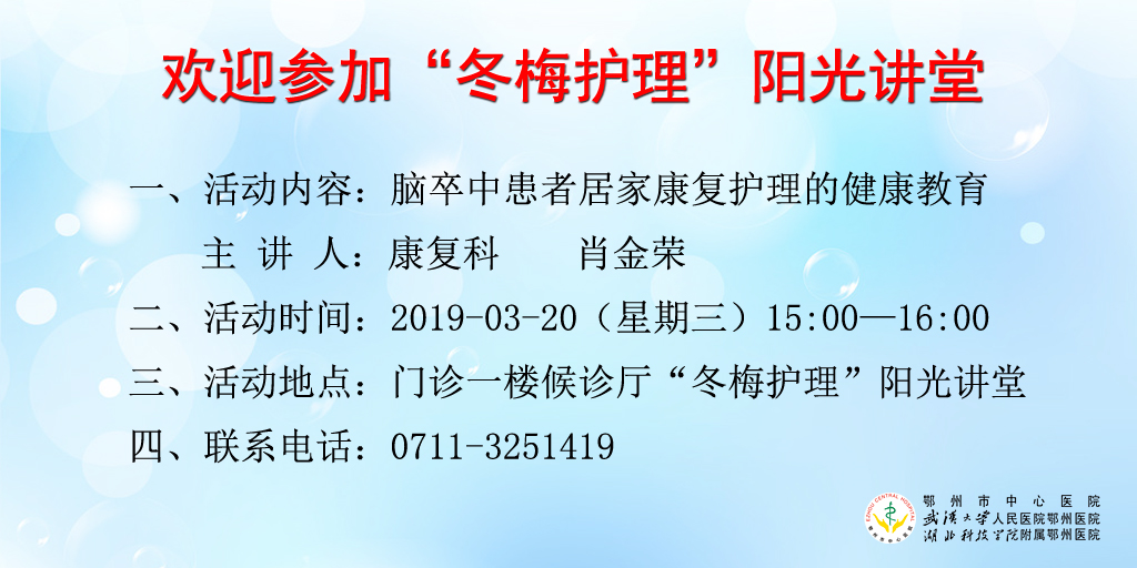 2019年3月20日“冬梅护理”阳光讲堂——脑卒中患者居家康复护理的健康教育