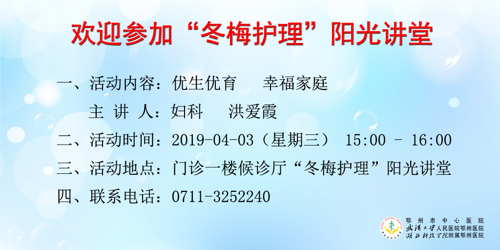 2019年4月3日“冬梅护理”阳光讲堂——优生优育幸福家庭