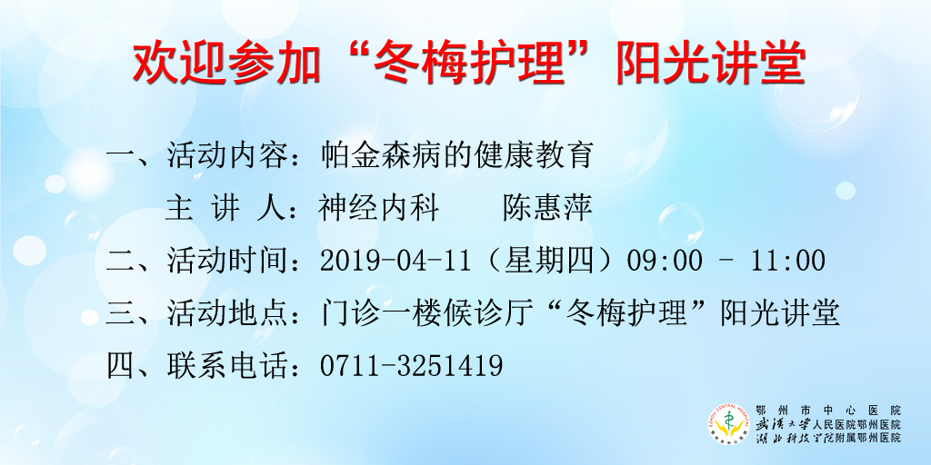 2019年4月11日“冬梅护理”阳光讲堂——帕金森病的健康教育