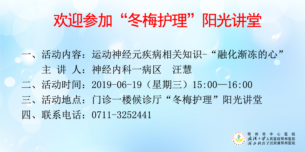 2019年6月19日“冬梅护理”阳光讲堂——运动神经元疾病相关知识-“融化渐冻的心”