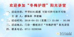 2018年4月25日“冬梅护理”阳光讲堂——甲型H1N1流感可防可控可治不可怕