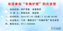 2018年4月11日“冬梅护理”阳光讲堂——血液透析患者的居家管理