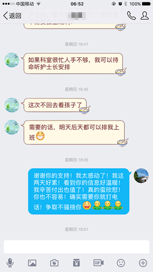 医生朱立欢主动请缨支援三医院进行技术支持,胡园医生感冒不适又间断流鼻血仍连续工作16小时,“奶妈护士”吴巧主动要求倒中夜班,缓解中夜班压力,余晓娟、胡爽、杨毅等加班加点坚守岗位。
