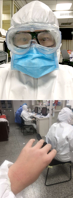 非典爆发时,我们不是病源爆发区,感染的人少;禽流感爆发时,因为疑似病人被隔离在发热病房,那也是一段平常的记忆。“新冠肺炎”的爆发,我们处在一线,处在发热病房里,我们才真正体会到什么是爆发性流行。身边是满脸疲惫的同事,穿了隔离衣,不能喝水、不能上厕所,连口热饭都因为忙不能及时吃上,下班了也不敢回家;眼前是一脸病容,焦躁不安的病人,交通的管制,疫情的扩散,药品的短缺等一点风吹草动都让他们诚惶诚恐。
