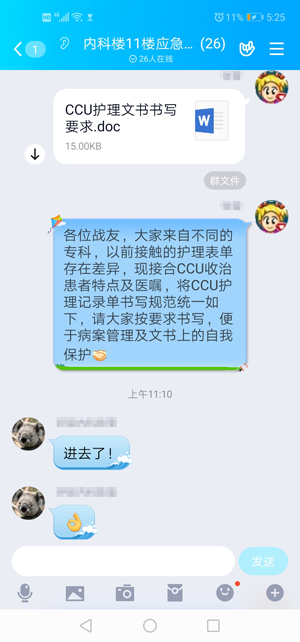 共产党员张莹护士长到内科11楼CCU后,首先将所有监护急救设备进行检查、定数定位消毒备用;对来自临床各科室支援的护理人员进行工作流程、消毒隔离要求、危重患者护理文书书写、呼吸机等抢救设备使用进行统一规范化培训。在CCU没有卫生员的情况下,张莹护士长亲自承担消毒处置工作,保障医患双方安全。