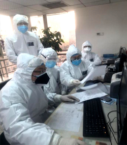 赵丽芹护士长把病区环境、分区、责任分工等内容向曾婷护士长进行详细的讲解。曾婷护士长了解科室情况后,根据工作经验对各班工作流程提出修改意见,精简流程,合理分区,减少护理人员进入污染区域的人数和次数,从而保障工作人员的安全。