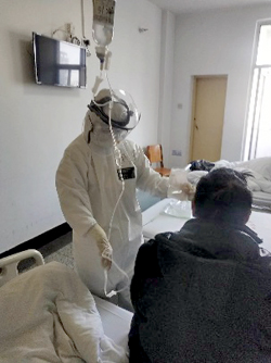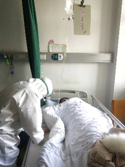 随后,她与科室护理人员一起投入到病房护理工作中,为患者输液、做雾化、打开水、发放口服药等等,忙碌的身影不断的在病房中穿梭……