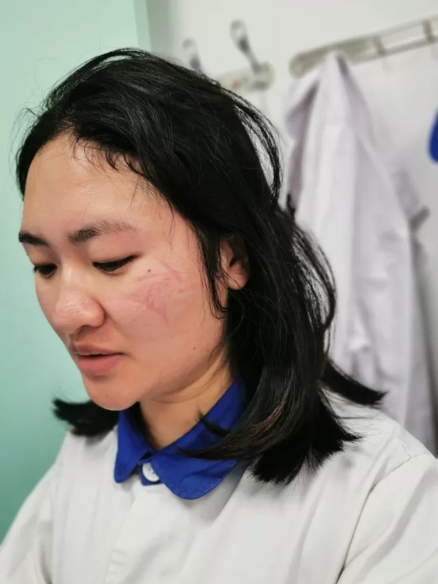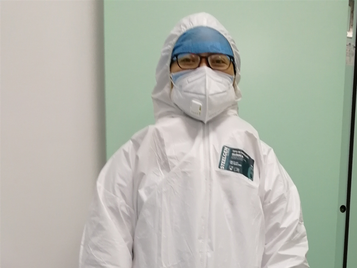 范志红护士长说,在诊疗活动的同时,我们要保证自己团队零感染。当美小护何丽萍的手被消毒液泡破了皮,在工作前防护手套一层、两层、三层的加。