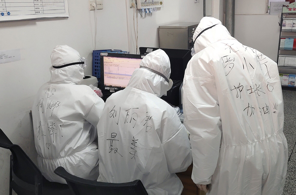 原鄂州市中心医院肾病内科病房,作为现在发热病区内六科,统一收治肺炎发热患者,科室除高国胜主任外,组成人员均是其他科室外派支援的。去往内六科工作的第一天,穿着里三层外三层的防护服,工作环境也不是很熟悉,大家不问名字根本认不出谁是谁,心想这护理工作多难落实啊!