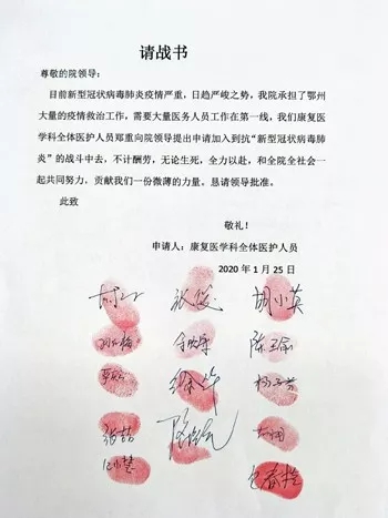 1月28日,医院抗疫的第一周里,我们在医院的宣传栏里发现了青年护士陈洁的随笔感言。她写道:在千钧一发的生命线,在防控疫情的最前线,我看到了最美逆行者的背影。是他们,用青春与热血构筑起铜墙铁壁,他们是万里长城坚固的城砖。也许,我无法将他们的名字一一呼喊,甚至,也无法将他们的年龄一一计算。但我知道,他们本就和我们一样,普通又平凡,当危险与使命到来之时,我们,毫不犹豫地扬起了与疫情拼杀的风帆。