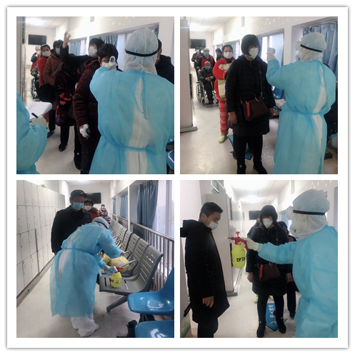 严把接诊关:透析患者进入透析室必须经过流行病学登记、口罩佩戴完好、测量体温、体表喷洒消毒液、进行手卫生这五道关卡。