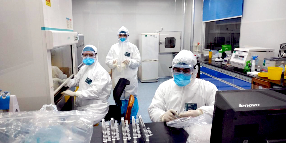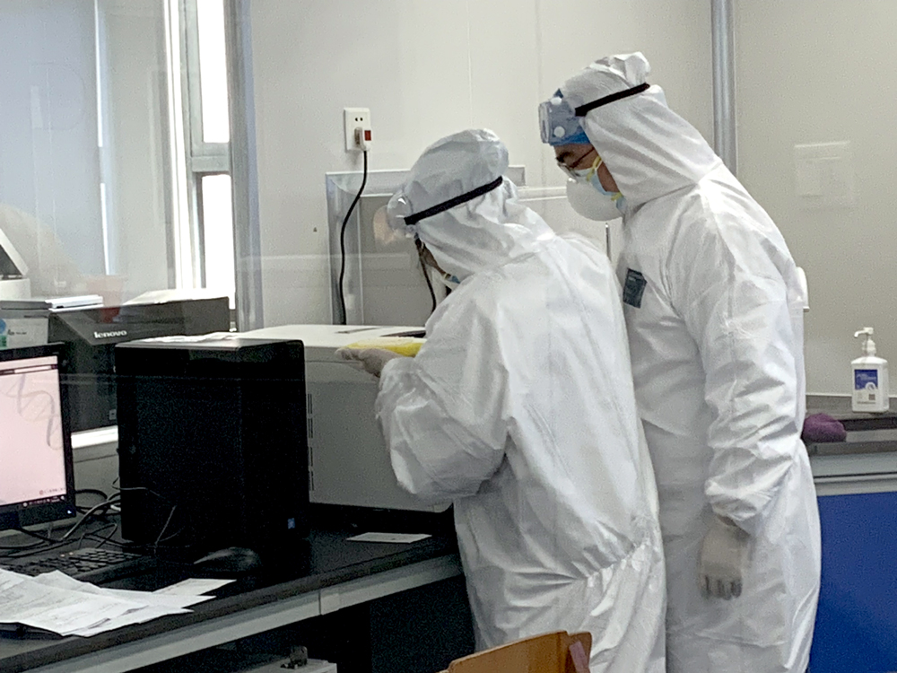 现在的检验科,完全进入了战斗模式,各负其责,守好阵地。龚国富主任全盘统筹整体工作及核酸检测主审工作,张伟主任负责试剂耗材、各种防控物资调配等后勤保障工作,张剑波主任暂时负责检验科日常事务及科室生物安全防护工作,程丰主任负责PCR室核酸检测事宜,段秀群主任暂时负责输血科的工作和宣传报道,所有党员同志都自觉加班加点,普通群众也是积极向上,撸起袖子加油干。