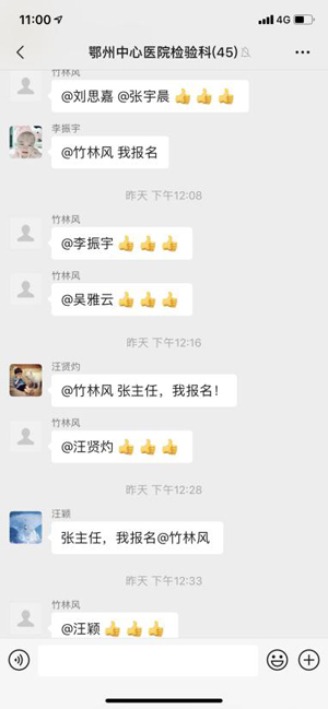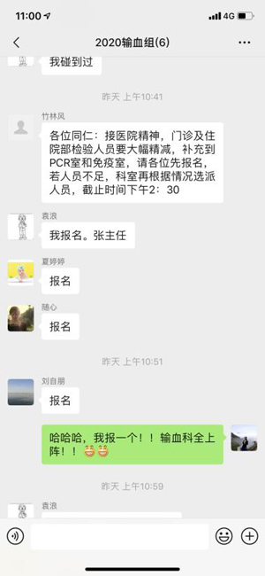 在团队的感召下,科室很多年轻的同事都自告奋勇的要到PCR室上应急班。何杰、田欢、袁浪、刘自朋、宋潇、汪颖等一批年轻人,主动请缨加入抗击疫情第一梯队并迅速全身心的投入工作;石雨、夏婷婷、李振宇、陈悦、张宇晨等人,克服个人困难,依然是抢着报名要上一线班;还有周斌武等中青年的一批同事,主动担起生化室、临检室、门诊检验的担子,甚至到急诊检验去值夜班。