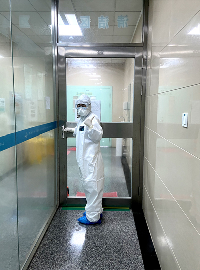 今天是来到发热门诊的第四天,整装完毕后,我身着“里三层外三层”防护铠甲来到诊室。看着窗外排着长长的队伍,一张张布满焦虑的脸庞似乎是一种催促,完成晨间消毒工作后,我和医生迅速投入到接诊工作中,尽全力让更多病人早一分钟接受诊治,为早日战胜病魔带来一分希望。