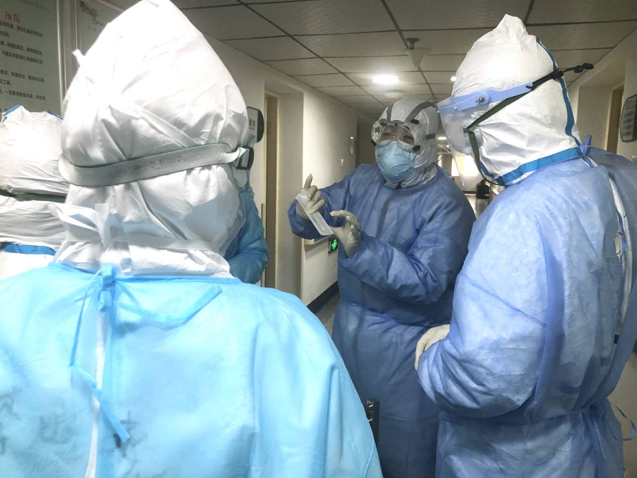 48岁的熊红玲老师,将今年高考的女儿托付给他人照顾,和爱人一起冲锋在抗疫前线,不怕苦不怕累,每天将自己分管的事情有条不紊的做完后,还热情地帮助他人做事,是大家的“贴心大姐”。上岗不久的90后男护士余文博,不声不响的将所有事情默默做好,手脚麻利,显得“老练”。随着重症患者的不断收住院,科室就像不断被拧紧的发条,运转得越来越快,各个班次也越来越忙,每天上班都是一身汗接着一身汗,可喜的是,我们不仅没有倒下,反而每个人的潜能都被激发了出来,护士姜星感慨道:以前在普通病房,5分钟抽好一个血气觉得自己特别棒,现在戴着护目镜看不清楚的情况下,2分钟抽一个血气还嫌弃自己太慢了!病区里,听不到大家一丝的抱怨,而是匆匆的脚步声和相互打气的声音。