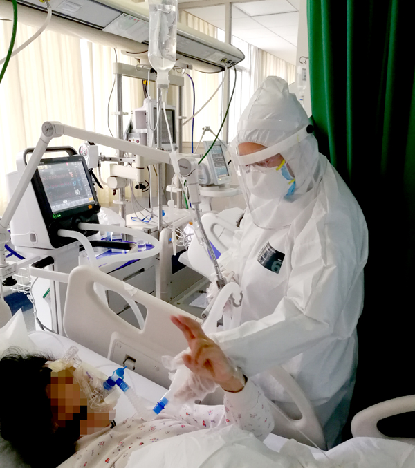 “我们科室的病人病情都特别重,有时候看到他们痛苦的样子,而自己又无能为力,就有些难过。但是身边的人给了我很多帮助,同学、家人、团队都在努力,我只有做得更好,才能不辜负大家的理解、支持和帮助。”说起身边的人,她只有感动与感谢。她觉得,“那么多人在外面出力,就是为了让我们安心在里面出力。我们有这么好的团队,肯定能救治病人、战胜疫情。”