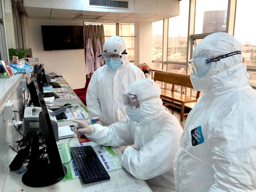 哪里有危险,哪里就有他们的身影。副主任医师翁光明、熊雪松、彭义全,主治医师尹蒙,住院医师张明江、尹行,对于患者来说,都是他们耳熟能详的名字。在急诊科、发热门诊、内2科、内4科、内5科、内8科都有他们的身影,他们每天穿着层层的隔离服,戴着护目镜和口罩,患者们无法看清白衣天使的面孔,只能记住他们身上那一袭白衣和他们精湛的医术、无微不至的关怀,他们穿越在生死线上的忙碌身影每天重复在病区。正是有了他们的舍生忘死,多少个患者才得以找回健康;正是有了他们的舍小家、顾大局,多少个家庭才得以重圆,他们是当之无愧的最美逆行者。