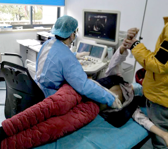 除了进入隔离病房进行超声检查,吴庆主任在疫情以来都在为急、重症患者进行超声介入治疗,包括胸腹水穿刺置管引流、肝脓肿置管引流、乳腺脓肿置管引流、胆囊穿刺置管引流、肾盂穿刺置管引流、股静脉穿刺置管以及肝肿瘤穿刺活检等。