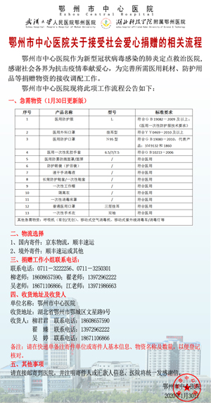 兵马未动,粮草先行。由于各种医疗物资严重缺乏,医院1月24日正式向社会各界发布了求助公告。1月27日,医院以应急办姜海燕主任为首牵头成立了物资捐赠小组,随着被确诊为新冠肺炎的病例数据的逐日增长,以及医疗防护物资的严重告急!捐赠小组开启了20多个日日夜夜,不分昼夜的接收捐赠工作。