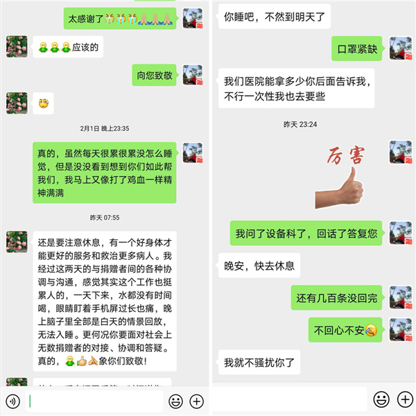 这段时间,我们的电话被轮番打爆,每天数百个电话、上万条微信和短信急切的询问着捐赠的每一个环节和物资的步步进展!我们一边接听着电话,一边急速的敲击着键盘;各种医用物资的证明文件在各个微信群里四处传递,有英文的、日文的、法语的、韩语的……