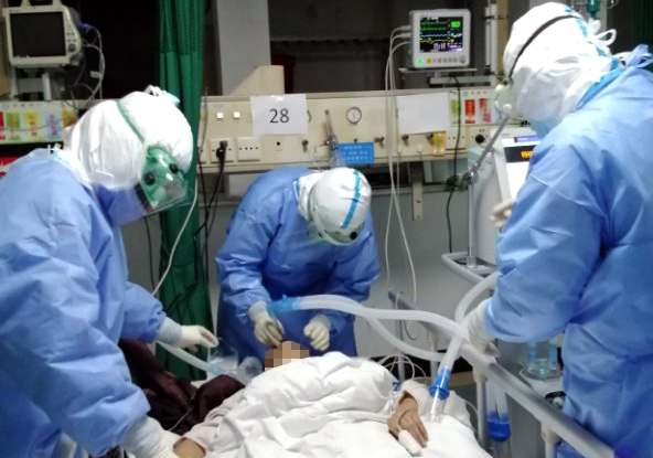鄂州市中心医院作为鄂州市唯一的三甲综合医院,在这次疫情中承担最繁重的救治工作,收治全市最危重的新冠肺炎患者。麻醉科急救插管小组承担着全院危急重病人的急救插管重担,气管插管工作是一项极高危的工作,因为气溶胶扩散会导致病毒传播,而当麻醉医生在病人口鼻附近进行近距离操作时,呼吸道会喷射出大量的病毒气溶胶,其风险可想而知。“我们不上,谁来上?”这就是急救插管小组成员所想。