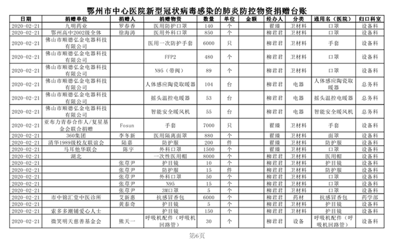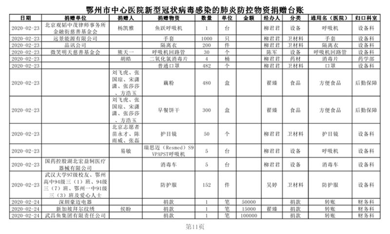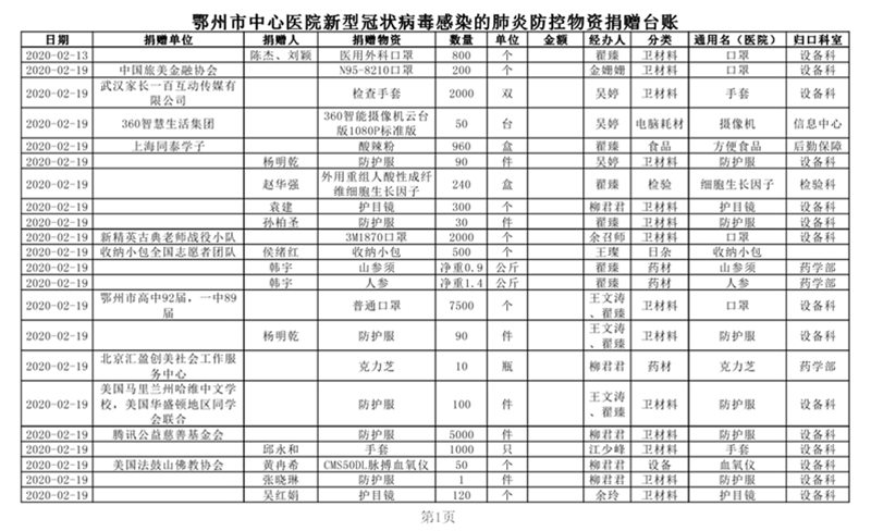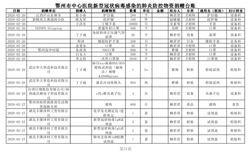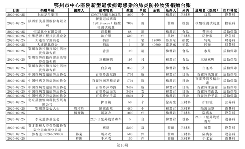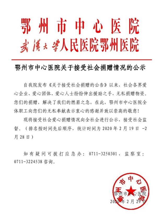 鄂州市中心医院关于接受社会捐赠情况的公示(二)