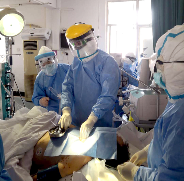 手术开始,喻院长和同事们就进入到全神贯注的状态,用过硬的专业技术和新冠肺炎病毒“过招”。在医护团队默契地配合下,他们一鼓作气成功地完成了手术。随着患者血氧饱和度的上升,各项生命体征也趋于稳定。