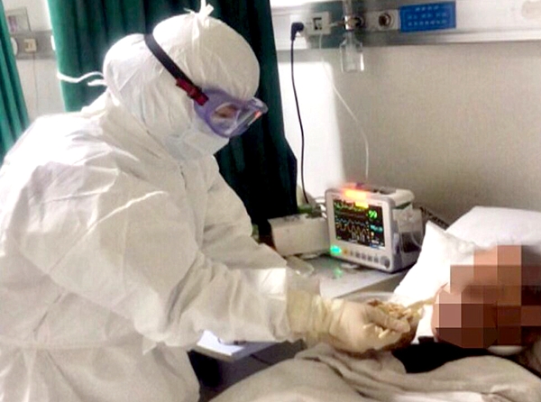 2月11日,这位老人因新冠肺炎感染并发消化道出血被收治入院,生命一度垂危,2月17日住进5楼的重症监护室。由于全家都感染了新冠肺炎,一名至亲因救治无效离世、儿子也在住院,老人承受着巨大的心理压力,精神近于崩溃。熊珊带领护理团队在进行身体护理的同时,给予老人细致的心理呵护。
