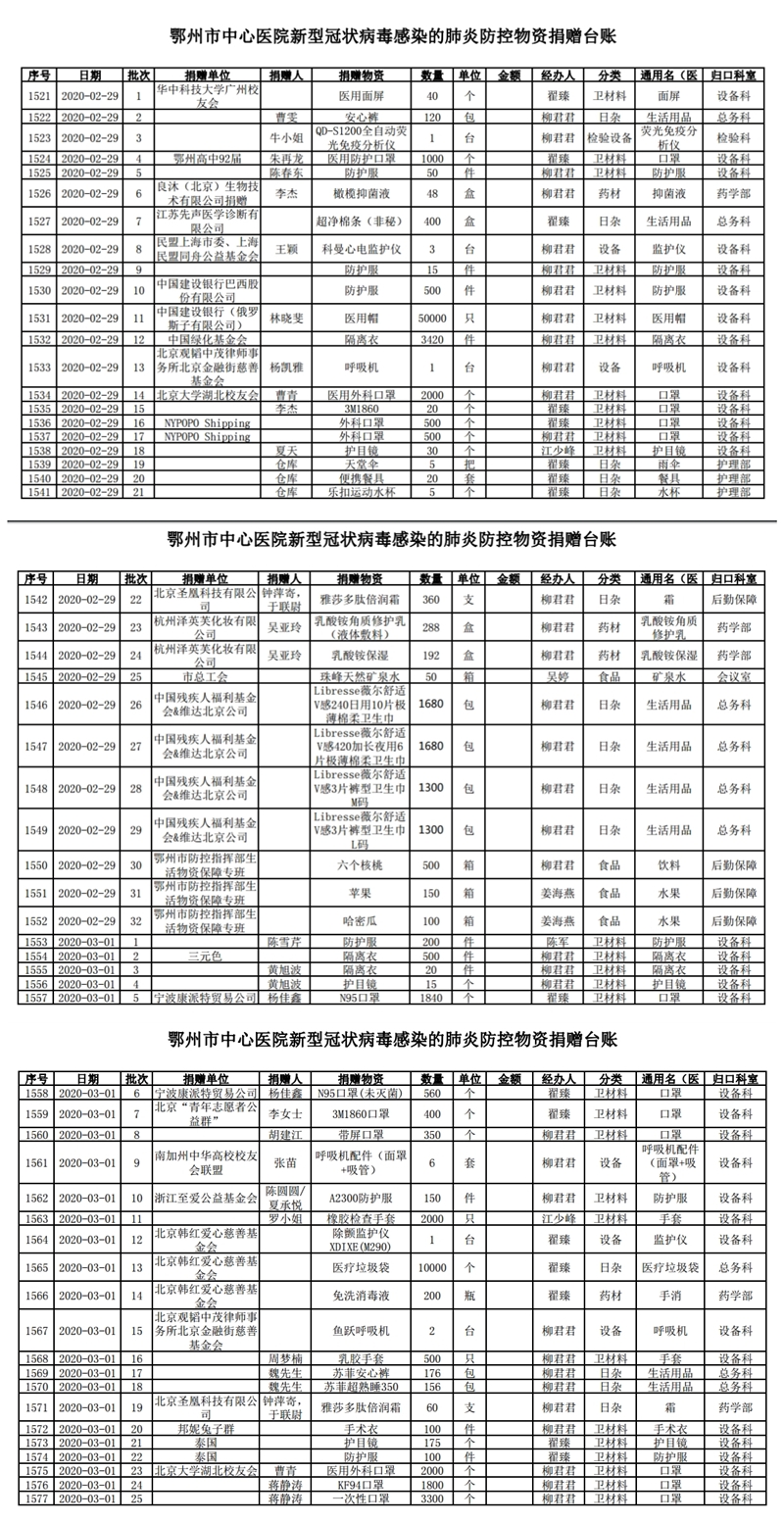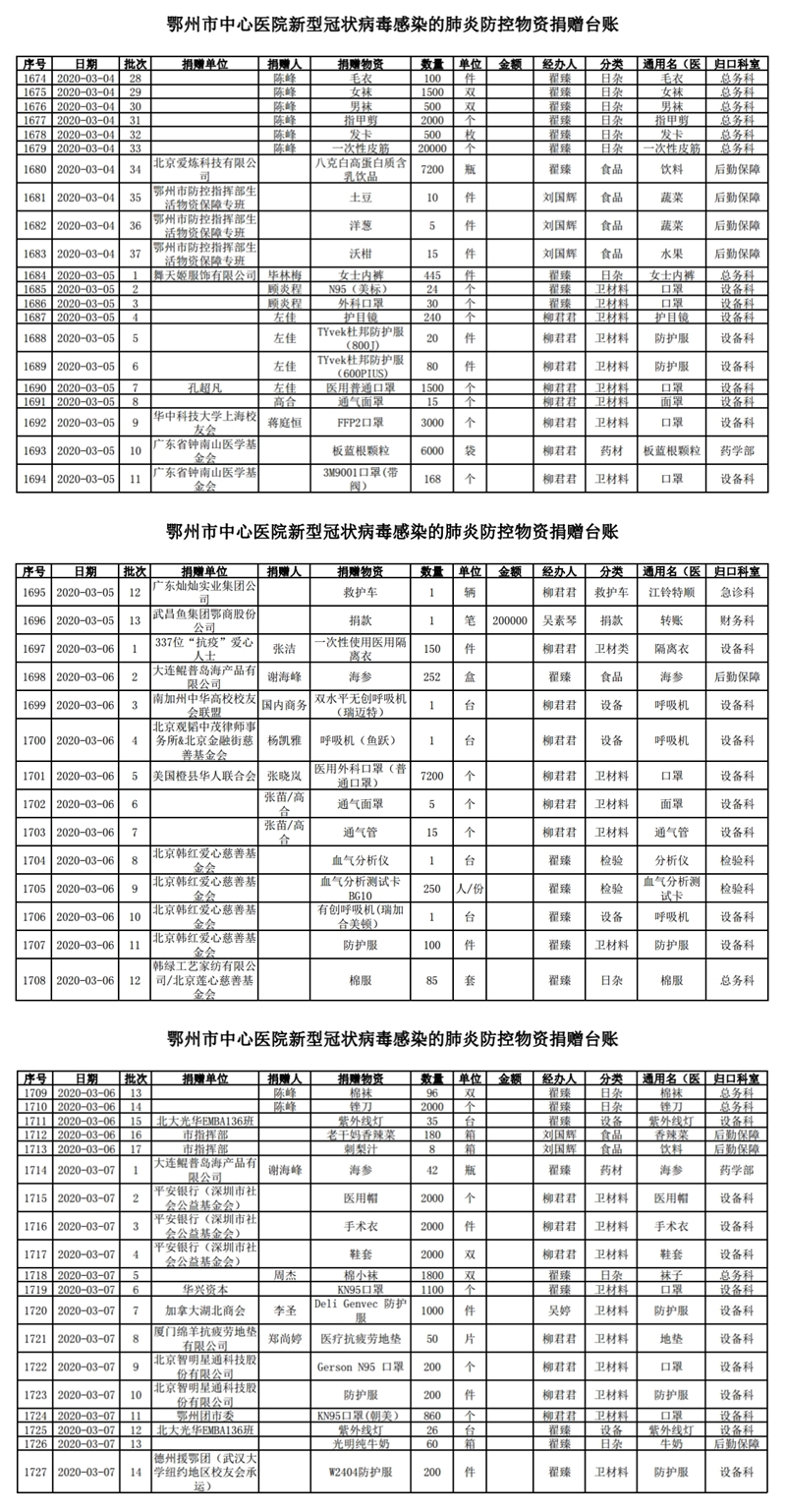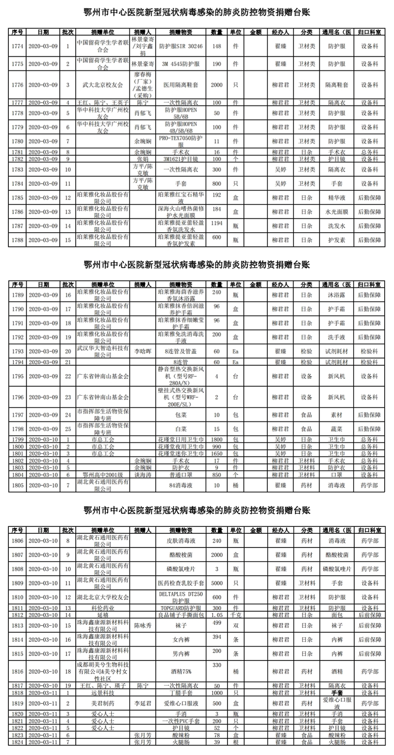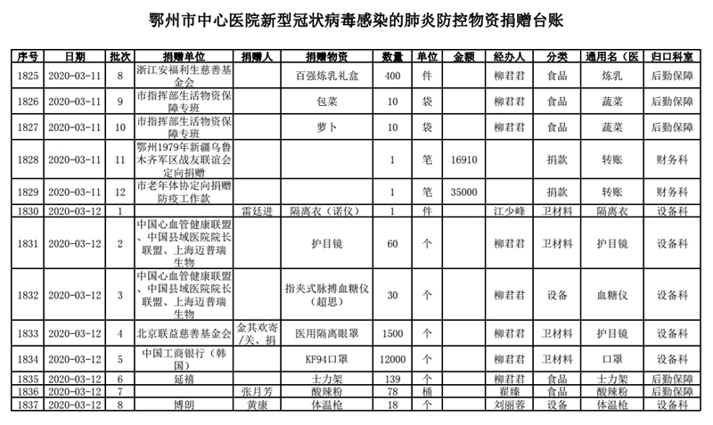 鄂州市中心医院关于接受社会捐赠情况的公示(三)