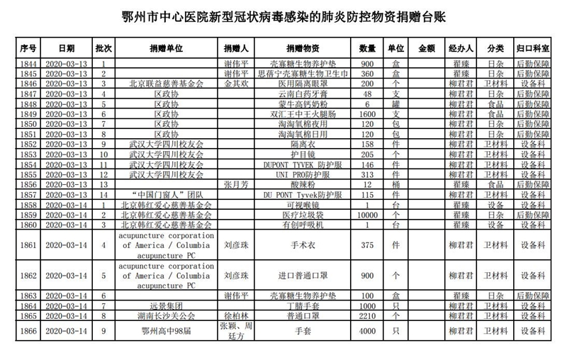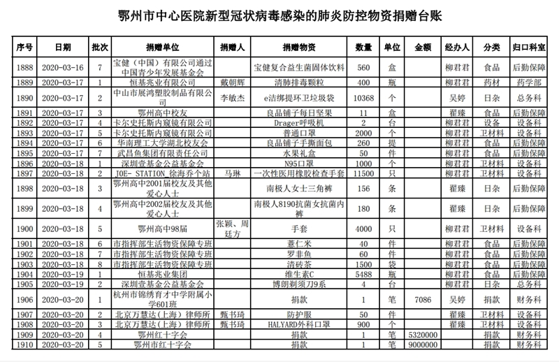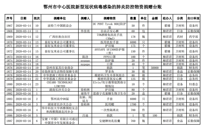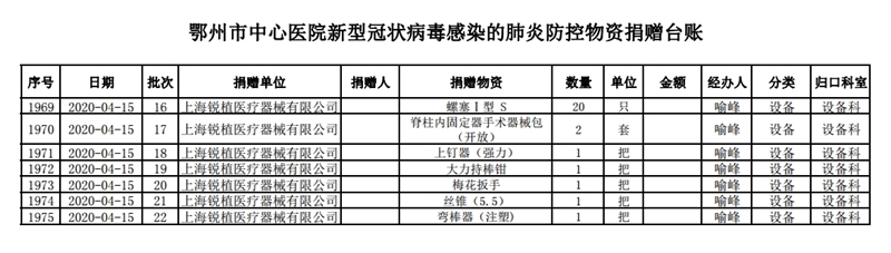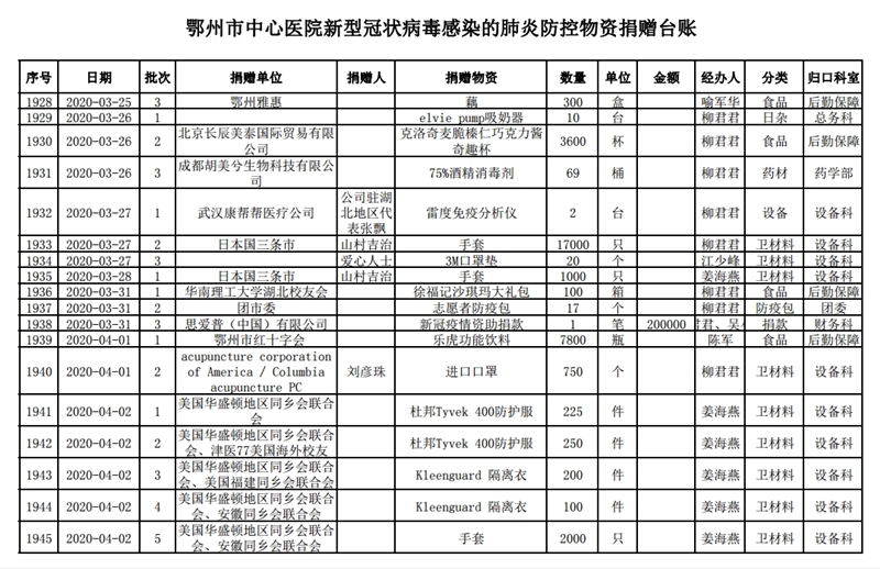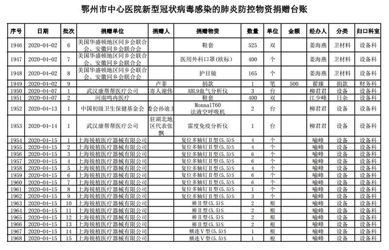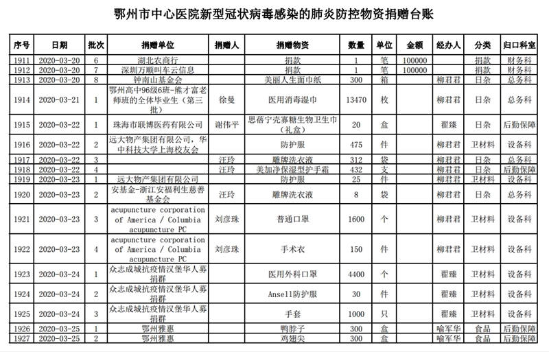 鄂州市中心医院关于接受社会捐赠情况的公示(四)