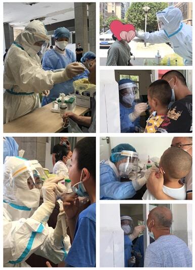 “天气热、工作辛苦,但大家对我们的工作很配合,不管是陌生人还是相熟的同事,还反过来关照我们,我们很感动。不少人做完检测都会对我们说‘谢谢’或是‘辛苦了’,而孩子的笑脸和大家的善意就像一阵凉风,吹走了劳累和炎热。”采集人员说。
