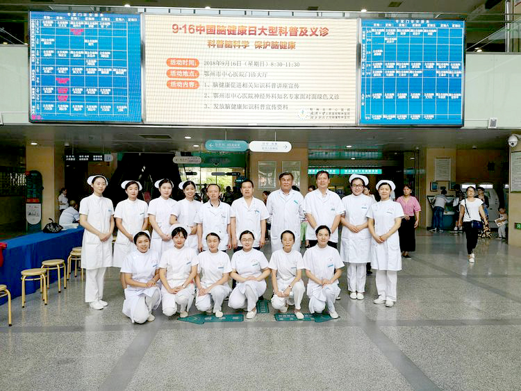 2018年9月是中国脑健康宣传月,为了提高大家对脑健康的重视,了解脑疾病、关注脑健康,9月16日上午8点30分,鄂州市中心医院神经外科在门诊大厅开展了中国脑健康日宣传科普及义诊活动。
