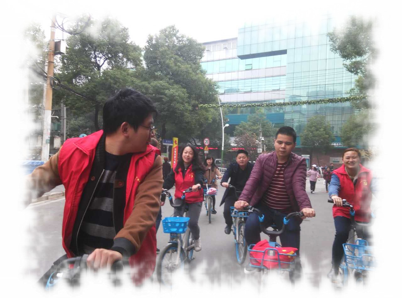 11月30日下午2点半,鄂州市中心医院机关党支部接到文明城创建任务后,支部书记梅梅带领10名党员志愿者,骑着最环保的交通工具“共享单车”驶向目的地:鄂州市中心医院文明城结对协创社区——官柳社区党员群众服务中心,接受当日的工作任务。