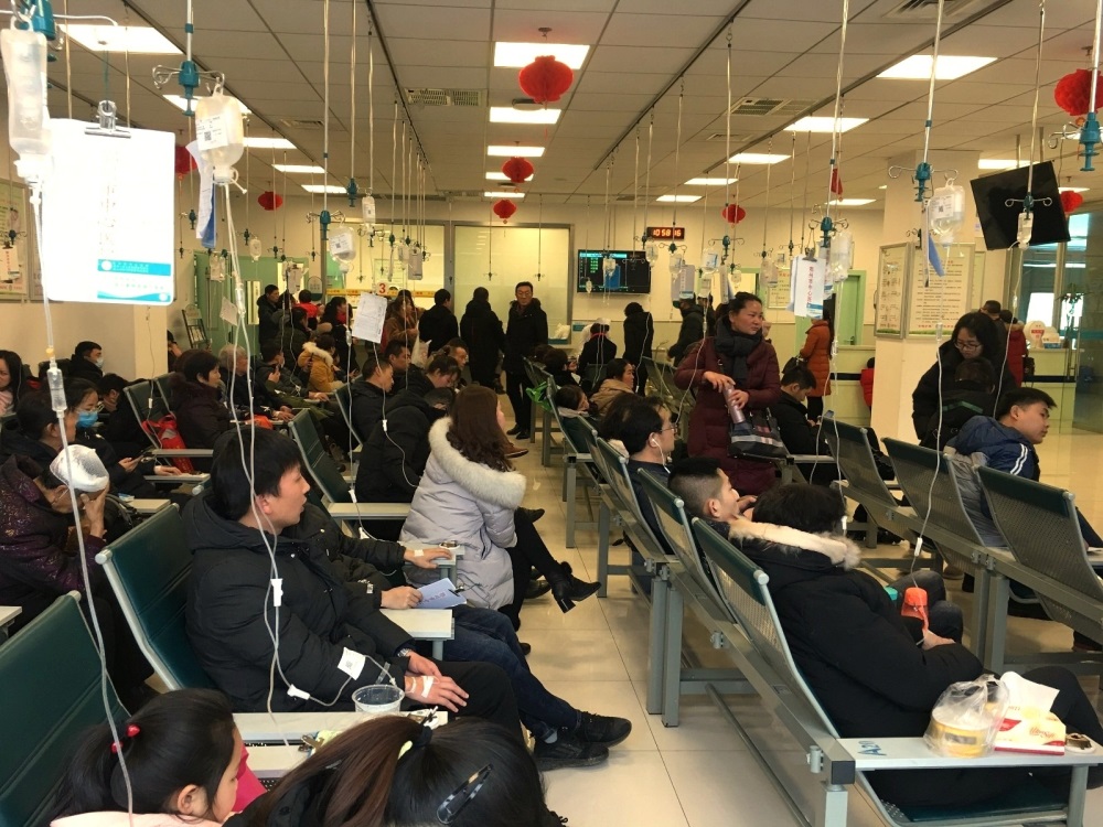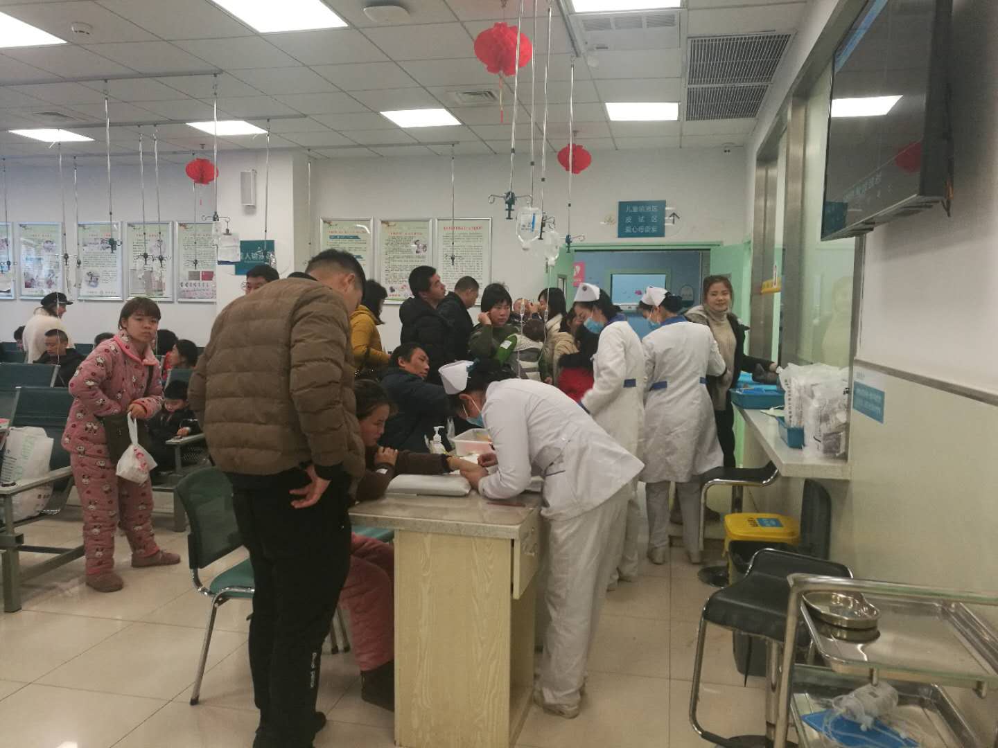 据统计,今年春节期间门诊输液室每天接诊输液病人300余人次,大年初四输液病人达到历史最高峰325人次。每天早上8点开始,输液室的接药台处就排起了一条长龙,都是等待输液的患者。