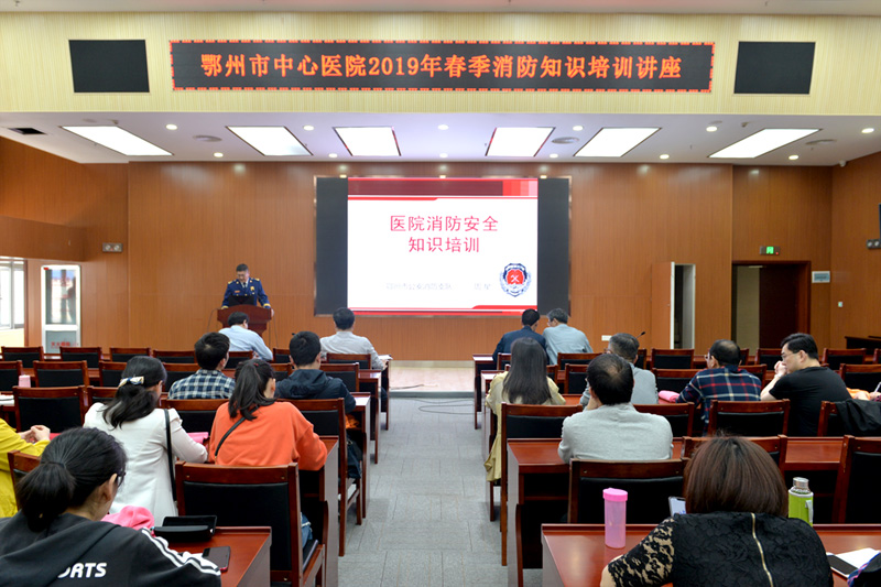 4月18日下午,鄂州市中心医院特别邀请鄂州市公安消防支队对我院职工开展春季消防安全知识培训。此次培训内容包括理论授课、火灾消防逃生演习和灭火实战演练,全院200余职工参加了培训,院党委书记万福尧、执行院长刘黎明出席此次培训,活动由院长助理喻军华主持。