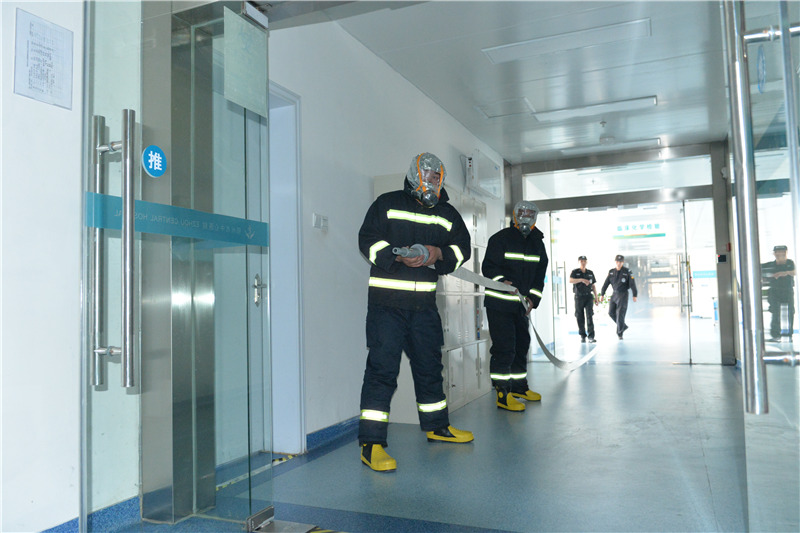 随后周星教官带领消防官兵在医院医技楼四楼进行消防逃生自救演练,详细讲解了火灾发生后的正确逃生姿势与逃生技巧。