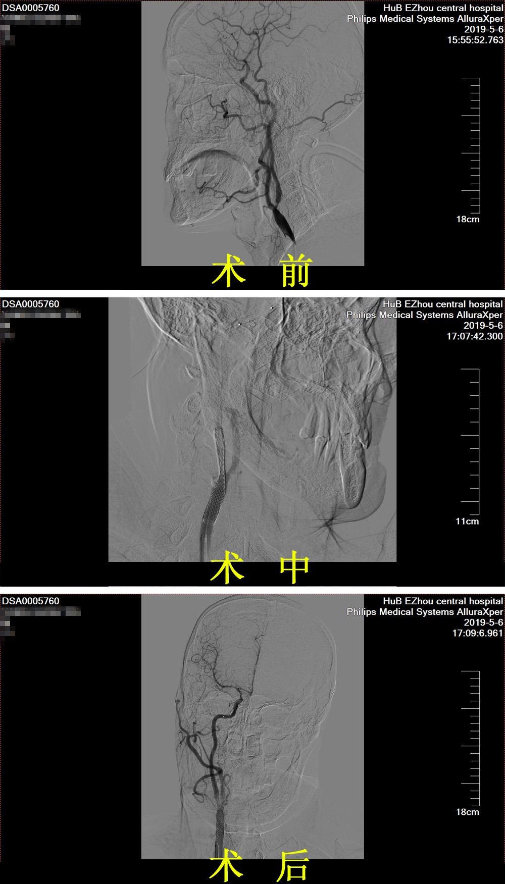 经武汉大学人民医院专家、鄂州市中心医院介入中心医生刘再加、神经内科一病区主任梅炳银和主治医师朱金洲联合会诊后,认为该患者已呈“重度颈动脉狭窄”,传统内科治疗难以取得理想效果,只有解决血管狭窄,才能促进康复,尽量减少病情恶化的可能,最佳治疗方案是颈动脉支架植入术。