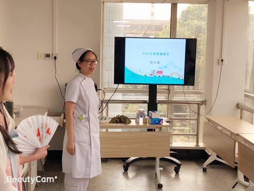副护士长张红梅用通俗易懂的语言和轻松愉快的授课方式讲述了PICC的定义、日常维护解决方法与护理小技巧,强调了PICC为长期静脉治疗提供了良好的“生命通道”。