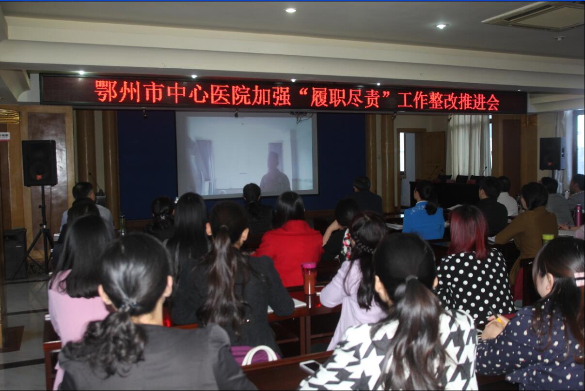 会议组织观看了“全省卫生计生系统加强履职尽责工作第二次直面问政”视频短片;通报了10月23日在全市履职尽责电视问政活动中,曝光的我院违规收费、过度医疗等突出问题。